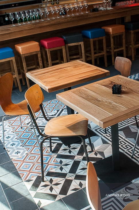 Angefangen mit dem speziell entwickelten Beleuchtungskonzept mit eigens angefertigten Leuchtkörpern, dem Farbkonzept, bis hin zu den maßgefertigten Einbauten und Tischen nach unseren Entwürfen, wurde das gewünschte Chic mit Industry Look konsequent umgesetzt. Die Wahl von Material wie Eiche und Zementfliesen, sowie ein ebenfalls von uns entwickeltes Grafikkonzept setzen den gewünschten Look bis ins Detail fort. Ein idealer Rahmen, zum Erleben der überwiegend Italienischen und mit Liebe zubereiteten Speisen des Simply Food